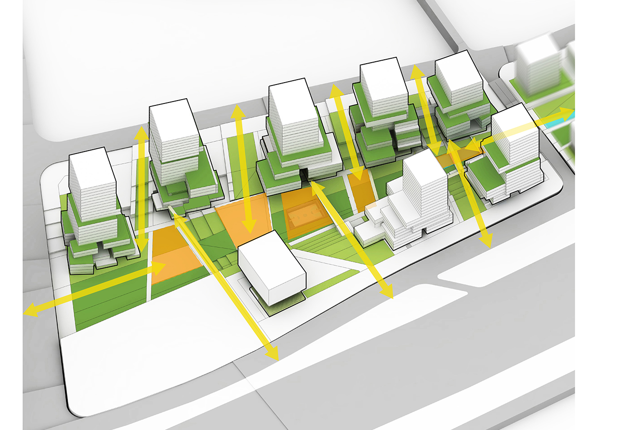 The Project is organized along a central axe, cover by vegetation; literally a “green axe” where all the public spaces are located. this internal park is well connected to the surroundings becoming an aggregation point for the entire neighborhood.